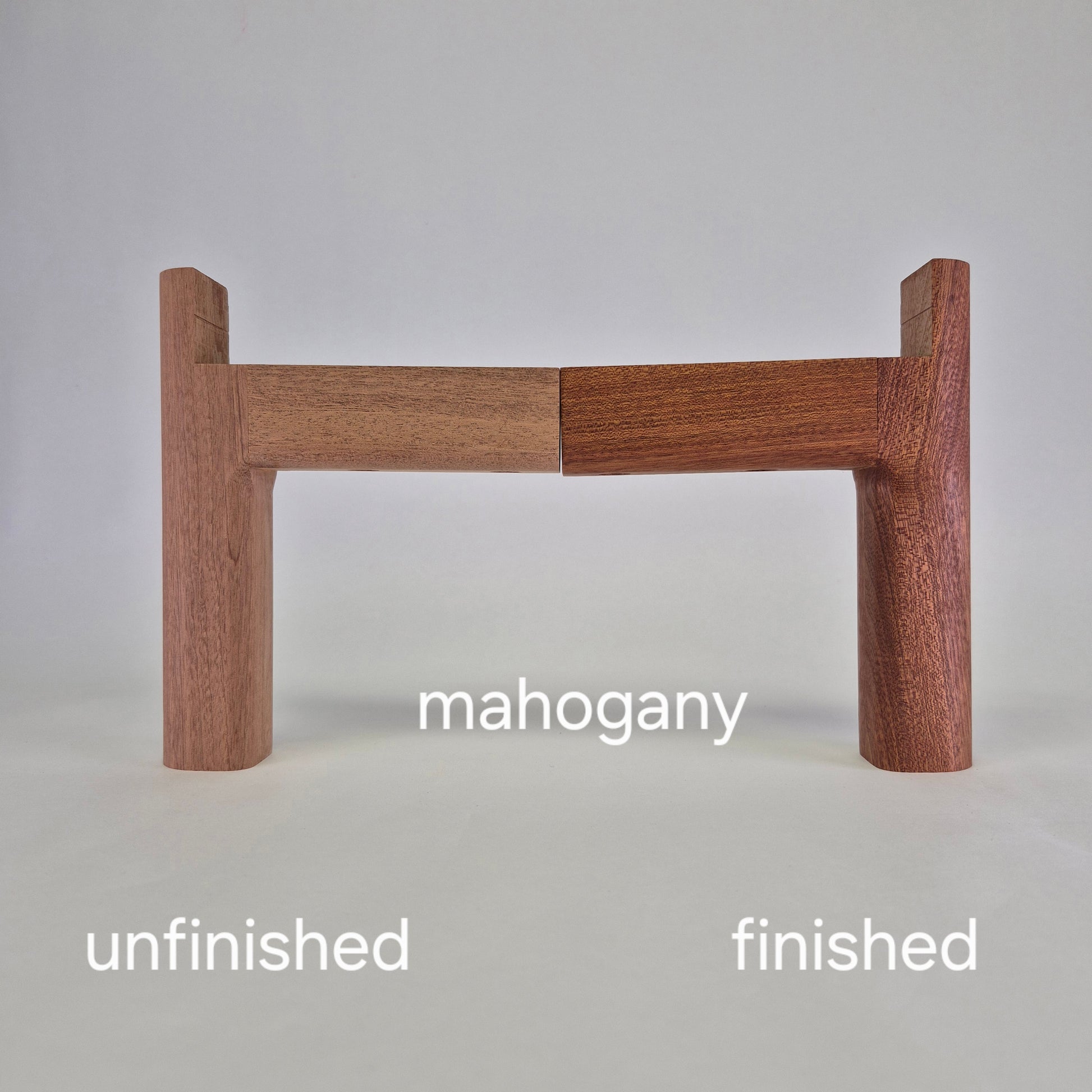 Available in Walnut, Mahogany, Maple, and White Oak. Each leg is finished with a clear polyurethane which brings out the natural color of the wood.